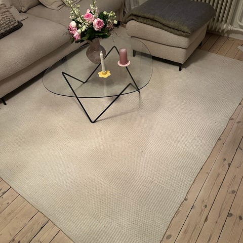 Storslagen off-white matta med en vacker struktur i naturligt material. Mattan ”Nadia” är ett gediget och vackert hantverk. Den är mjuk under foten och gör sig lika bra i vardagsrummet som i sovrummet för att ge en exklusiv känsla.