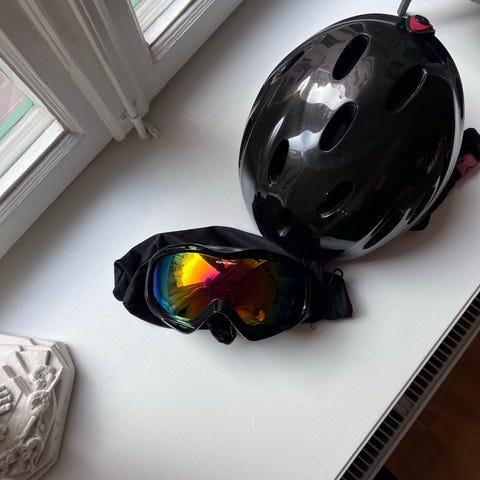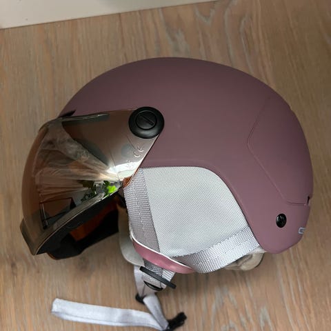 Säljer nu min skidhjälm med visir som kan fällas ner och upp när du vill , snabbt och enkelt!