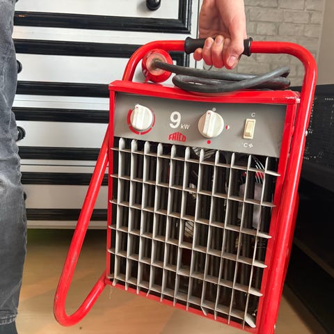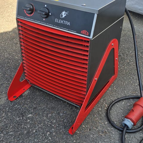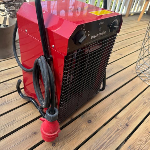 VEAB GRV 5 byggfläkt med effekt på 5000W. Enheten drivs med 380V 3-fas och är försedd med galler framtill samt reglage för inställning av värme och fläkthastighet på ovansidan. Färg röd. Lämplig för uppvärmning och torkning i exempelvis garage, verkstad eller byggarbetsplats där trefasanslutning finns tillgänglig. Utblås är kanalanslutet 125mm
