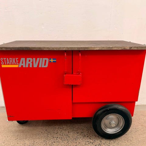 En arbetsbänk i okay skick. Stått ute under pressening under ett år, då den tagit lite visuell skada. Men ingen funktionell nedsättning.
