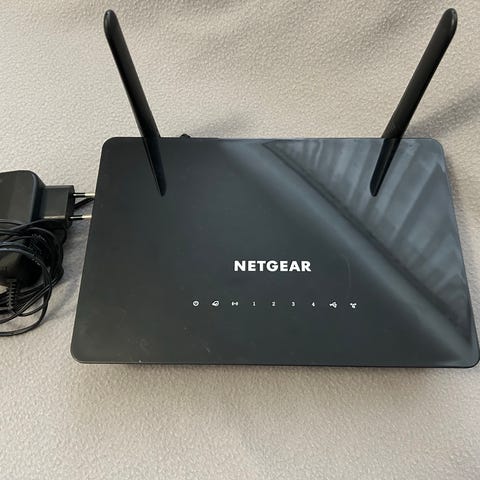 Netgear N600 WNDR3700 router i svart utförande. Trådlös router med dubbla band (2,4 GHz och 5 GHz) och flera ethernetportar för anslutning av trådbundna enheter. En USB-port för delning av exempelvis lagringsenhet i nätverket. Passar för hemnätverk eller mindre kontor där både trådlösa och trådbundna enheter behöver nätverksåtkomst.
