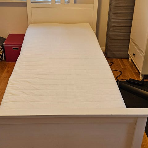 Vit träsäng med ribbotten.