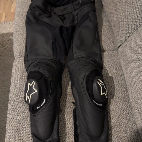 Alpinestars GP Plus R V3 läderjacka i svart med vita detaljer. Motorcykeljacka i läder med dragkedja framtill och höga krage. Försedd med förstärkningar och stretchpaneler för rörelsefrihet. Passar för motorcykelkörning på väg eller bana. Matchande läderbyxor från Alpinestars syns på bilderna, med knäsliders och stretchpaneler, avsedda för användning tillsammans med jackan som tvådelad skinnställslösning.