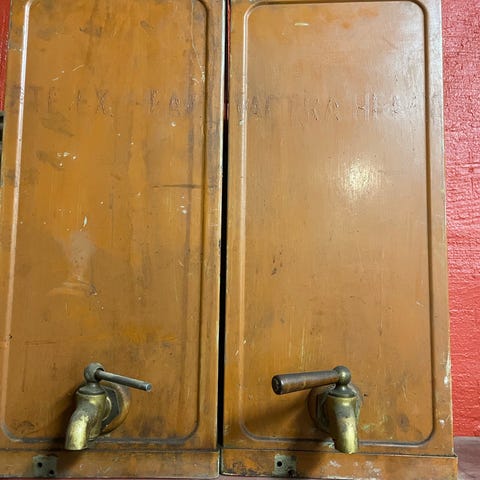 Blandat parti plåt- och metallkannor i olika modeller och storlekar. Flera av kannorna har handtag och lock, vissa är mer cylinderformade medan andra har vidare öppning. Ytskiktet visar spår av användning. Lämpliga som bruksföremål i verkstad eller garage, eller som dekorativa industridetaljer. Preside st pris eller ge ett bud