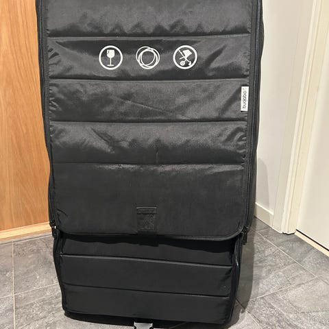 En transportväska för Bugaboo Donkey, skyddar vagnen när man ska resa. Får även plats med 1-2 paket blöjor (+ dubbelvagn). Varit med oss på 3 resor och fungerat klockrent, fint använt skick med mindre bruksslitage. Kompakt när den inte används.