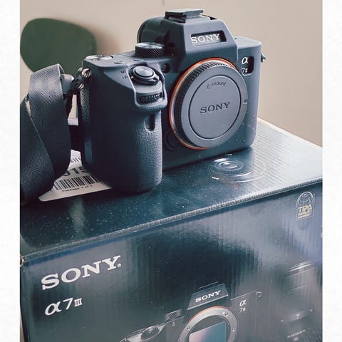 Säljer ett väl fungerande hus + alla tillbehör+ låda + cage + 35mm fast RF objektiv + batteigreppet