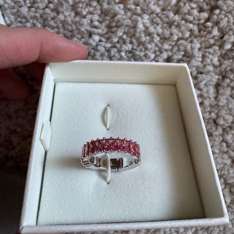 Ny och oanvänd ring från Sayabling som visade sig vara för stor för mig. Ringen är gjord i sterlingsilver och smyckad med labbtillverkade rubiner. Se bilderna, där jag har med all information från deras hemsida. Nypris 1500kr.