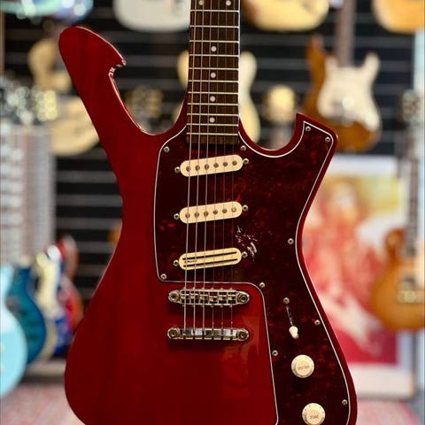 Jättefin Ibanez RG350QMZ i bra begagnat skick sånär som på ett par rejäla dings. Därav priset. Men det påverkar naturligtvis inte spelbarheten. Låter och känns precis som en Ibanez ska.