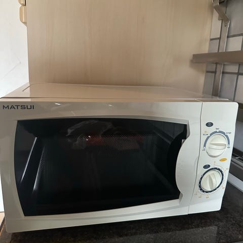 OBH Nordica mikrovågsugn i vit färg. Modellen har manuell rattstyrning på fronten för effektläge och timer. Märkeffekten för mikrovåg är 700 W. Yttermått enligt märkning: höjd ca 29,5 cm, bredd ca 45,6 cm och djup ca 36,5 cm. Invändiga mått: höjd ca 20,5 cm, bredd ca 28,5 cm och djup ca 28,5 cm. Standard 230 V, 50 Hz-anslutning med jordad stickpropp. Passar för uppvärmning och enklare tillagning av mat i hemmet eller på kontor.