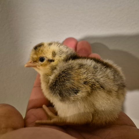 De måste bo inomhus i värmen med värmelampa ett tag till. (Tills att de är fullfjädrade)