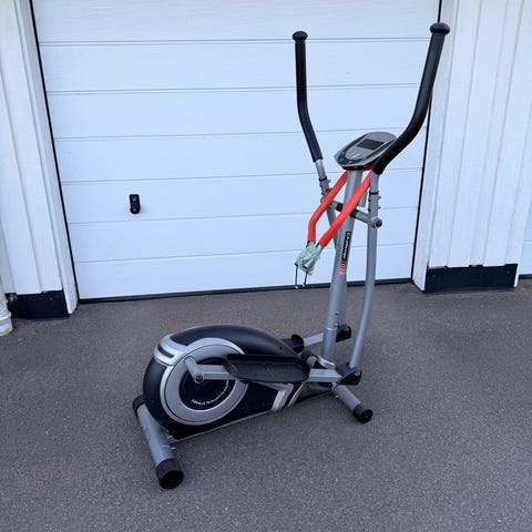 Horizon Delos crosstrainer. Motionsmaskin för konditionsträning inomhus med elektronisk display som visar bland annat tid och andra träningsdata. Maximal användarvikt enligt märkning är 136 kg. Går på vanligt eluttag. Lämplig för hemmabruk för användare som vill träna hela kroppen med elliptiska rörelser.