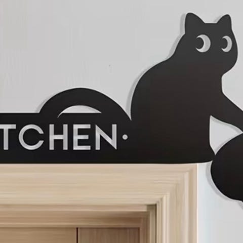 &Tradition väggdekoration med figur och katter. Dekorationen föreställer en stiliserad person tillsammans med tre katter i siluettform. Den monteras på vägg eller ovanför dörrkarm och fungerar som ett dekorativt inslag i inredningen. Passar i exempelvis hall, vardagsrum eller barnrum.