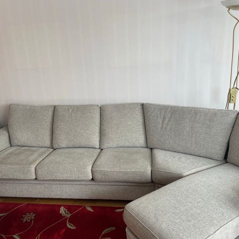 Soffan är fullt fungerande men tyget på sittdelarna har slitits sönder. Det är avtagbart och kan ersättas för den som vill. Kan troligen beställas från leverantör då soffan endast är 3 år gammal. Inhandlad på stalands.