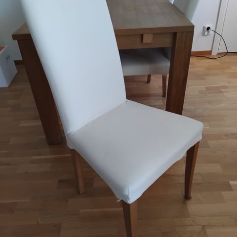 8 stolar till salu. Hämtas innan 14 Mars. Stolarna har 98 cm hög rygg. Sittytan är 48 cm hög, 52 cm bred och 47 cm djup. Klädsel är avtagbar. Märke: Crate&Barrel