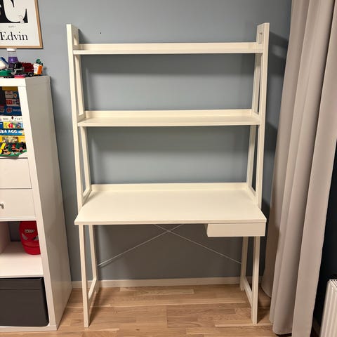 Skrivbord med hylla och belysning
