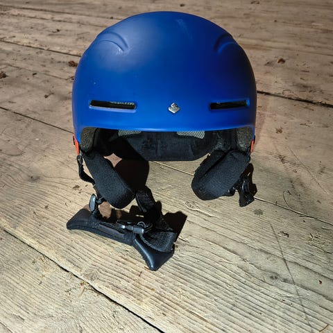 Säljer en blå K2 skidhjälm i barnstorlek 49–51 cm.