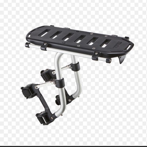Vikt cirka 635 g. Bra för användning på bland annat fulldämpade cyklar där traditionell pakethållare inte kan monteras eller om man vill ha en extra i fram. Enbart avhämtning i Lund. 80 jämnt.