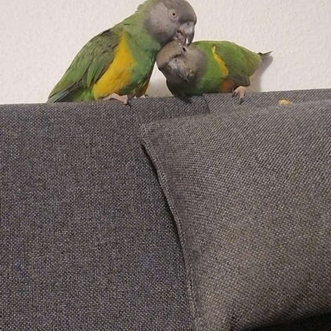 Har två stycken papegojor för salu, både paren är 1 år gamla och trivs ganska utmärkt med varandra.