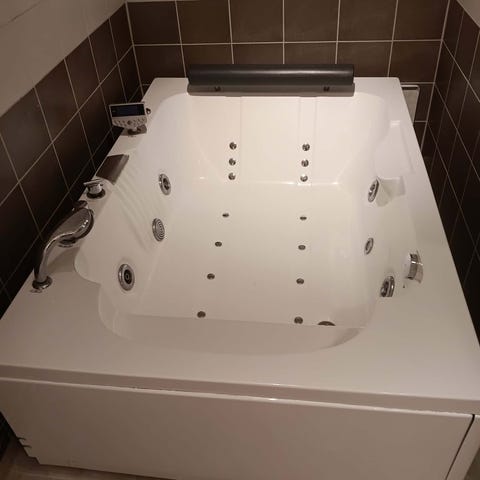 Säljer ett bubbelbadkar från Haga med massagejets, belysning och digital kontrollpanel. Perfekt för dig som vill ha spa-känsla hemma.