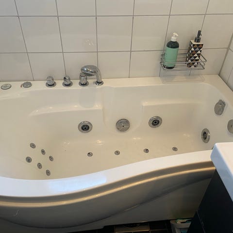 Badkaret har några sprickor i ytan, men dessa påverkar inte funktionen. Allt fungerar som det ska och jetsen går fint. Se bilder för skick.