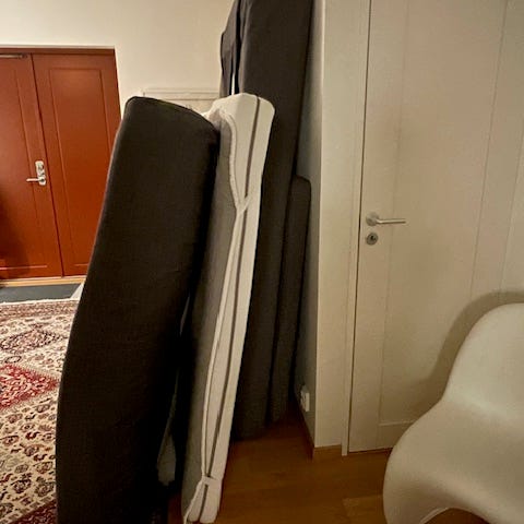 Skänkes på grund av ny säng.