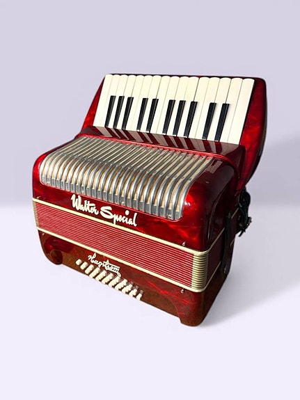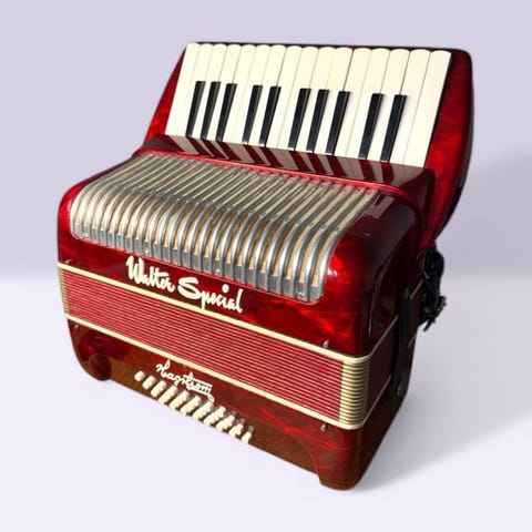 Tvåkörigt (8+8) Delicia Sonorex 3 med violinstämning. Ett litet och lätt dragspel, perfekt för barn eller nybörjare. Tillverkat i forna Tjeckoslovakien. Servat och stämjusterat. En bokstav saknas på fronten. Hård väska och nya axelremmar ingår. Vikt: 7 kg. Betala med kort, Klarna eller Swish till nummer 123 394 71 24.