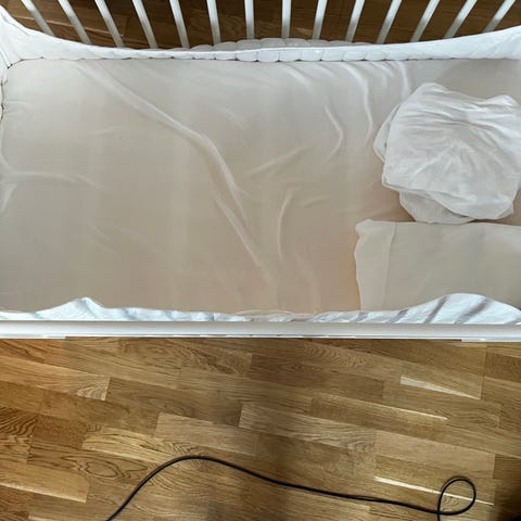 Det finns madrass oanvänd till och tillbehör till sängen.