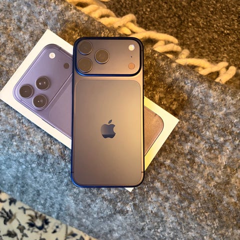 Helt ny iPhone 17 pro Max blå , aldrig startad , fick ut ny via försäkringen så kartongen är från gamla telefonen helt nytt skal medföljer med .