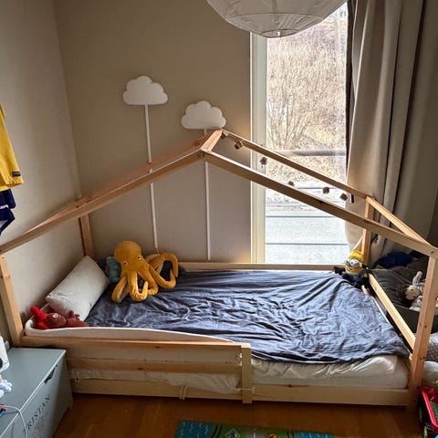 Säljer en fin juniorsäng med husformad träram från Jollyroom.