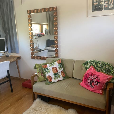 Stilig femtiotals bäddsoffa i naturmaterial