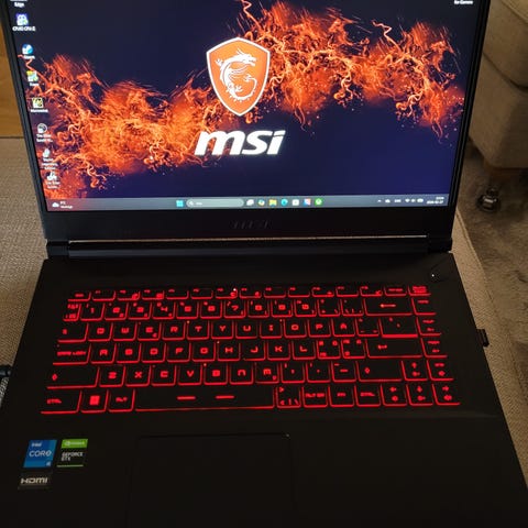 Äldre gaming laptop, den saknar luckan till DVD-spelaren. Den har repor lite här och där men är fullt fungerande. Batteriet är dåligt men fungerar perfekt med laddaren. Den är systemåterställd och redo att användas.
