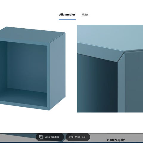 7 kvadratiska 35x35 moduler, varav två med lucka och två med glasdörr. De med glasdörr har integrerad belysning.