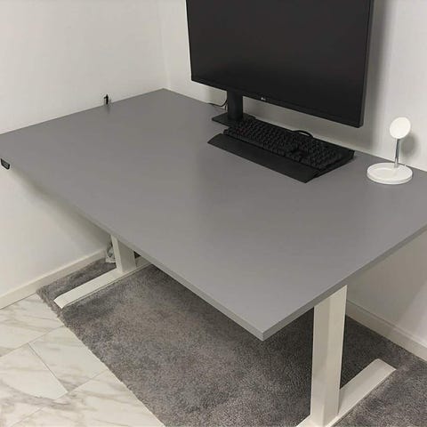 Rejält skrivbord med gott om plats samt hängare för stationär dator under. Höjd kan justeras med skruv. OBS! Inget annat på bilden ingår så som skärmar, dator eller tillbehör.