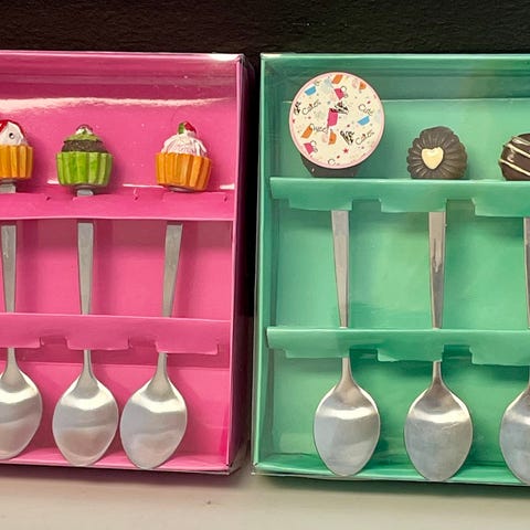 Besticken har graverade nallebjörnar på skaften och levereras i originalförpackning med rosa motiv.