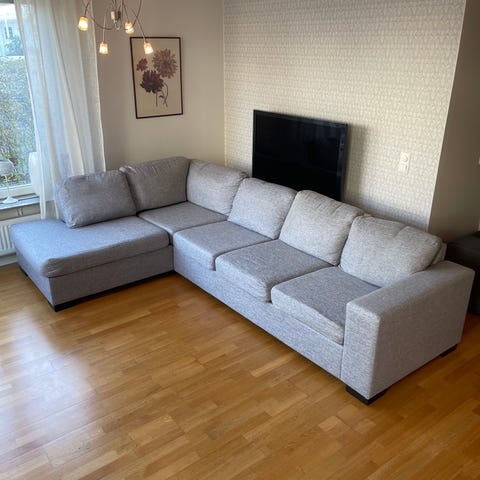 En fantastiskt snygg och bekväm soffa från Mio, i fint använt skick, inga skador på tyget. Väl omhändertagen och från ett hem utan djur eller rökare.