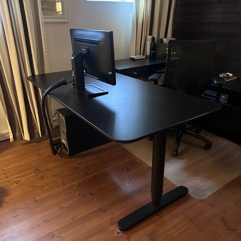 Säljer ett höj- och sänkbart skrivbord 140 cm långt och 80 cm brett. Köpt på IKEA för 4 år sedan och sparsamt använt. Stabilt och fungerar som det ska – perfekt för hemmakontor, spel eller studier.