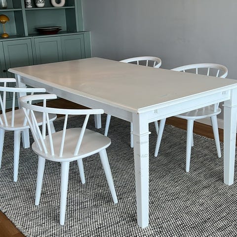 Vitt matbord med 2 iläggsskivor – bortskänkes