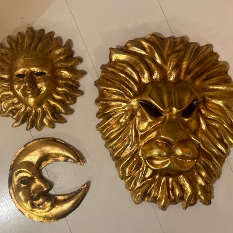 Lejonhuvud i brons, ganska stort, ca 50x30x40 cm. Fästes enkelt med två hål på baksidan. Hämtas i Kallebäck.