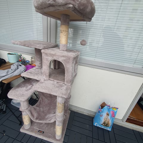 Ett nytt klösträd säljes. Kom aldrig till användning! 210 cm högt. Går att förankra i väggen för extra stabilitet.