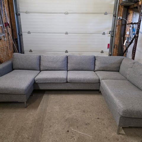 Hela soffan är ångtvättad samt alla kuddar är tvättade med. Det finns inga repor, slitage eller fläckar på soffan. Soffan är i princip ny skick.