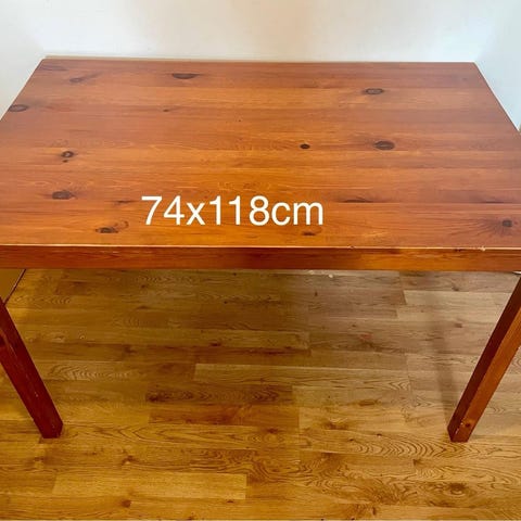 Fin matbord i ek med tre lådor, normal bruksskick och regelbundet inoljad.