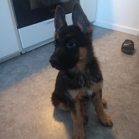 Hon är van barn och går bra i koppel och funkar bra med andra hundar