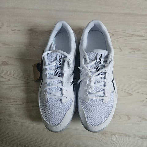 Asics träningsskor i toppenskick. Skorna är i storlek 43,5 och huvudsakligen vita med detaljer i guld.🙌Perfekt för olika inomhus- och övriga sportaktiviteter så som exempel tennis, innebandy och handboll.