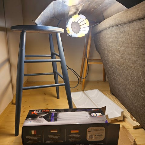 De behöver nya lysrör (går att köpa hos willab garden) och några saknar skruvar för höjning/sänkning. Går säkert också att köpa men annars funkar det bra att använda gummisnoddar.
