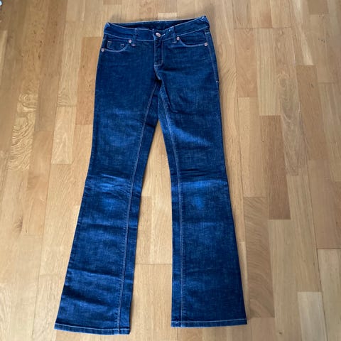 Säljer 2 par lågmidjade utsvängda Zara jeans i strl 34 i bra skick! Sparsamt använda!