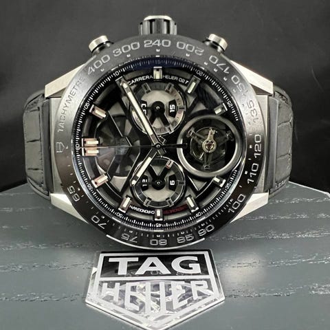 TAG Heuer Carrera herrklocka 2022 Ref.nr CBN2A1B.BA0643, med svart urtavla och kronograf. Bezel i Kermaik, Repskyddat safirglas på båda sidorna. Boett och armband i stål med viklås. Tachymeterskala på bezeln och lysande index och visare. Vattentät till 100m. Automatiskt, självuppdragande med gångreserv