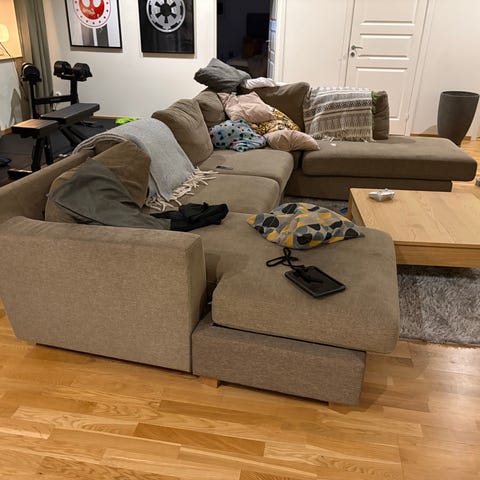 Klassisk träsoffa. Bra förvaring under locket. Finns på Instön, hämtning kan endast ske på helg.