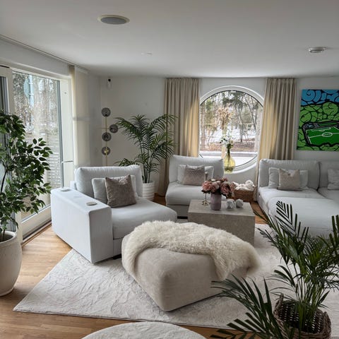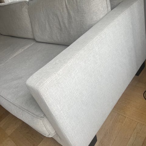 Säljer denna finns soffa, klädd i ett ljust Boucle-tyg från NoGA, framtagen av Nordiska Galleriet och inköpt på Länna Möbler 2025. Modellen heter Famn och är i absolut nyskick. Väldigt sparsamt använd.