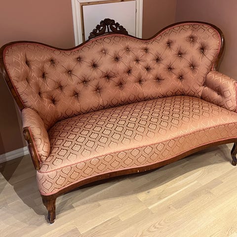 Soffa trä med förvaring rosa klädsel