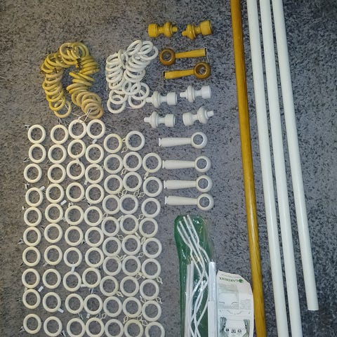 Textil i form av gardin / draperi / överkast med tidstypiskt mönster och färger från 1950-talet. Bredd 160 cm och längd 230 cm. Har troligtvis varit två långgardiner från början som min mor senare sytt ihop till ett nytt ändamål. Finns en skada i övre hörn, se bild. För övrigt fint skick för sin ålder.